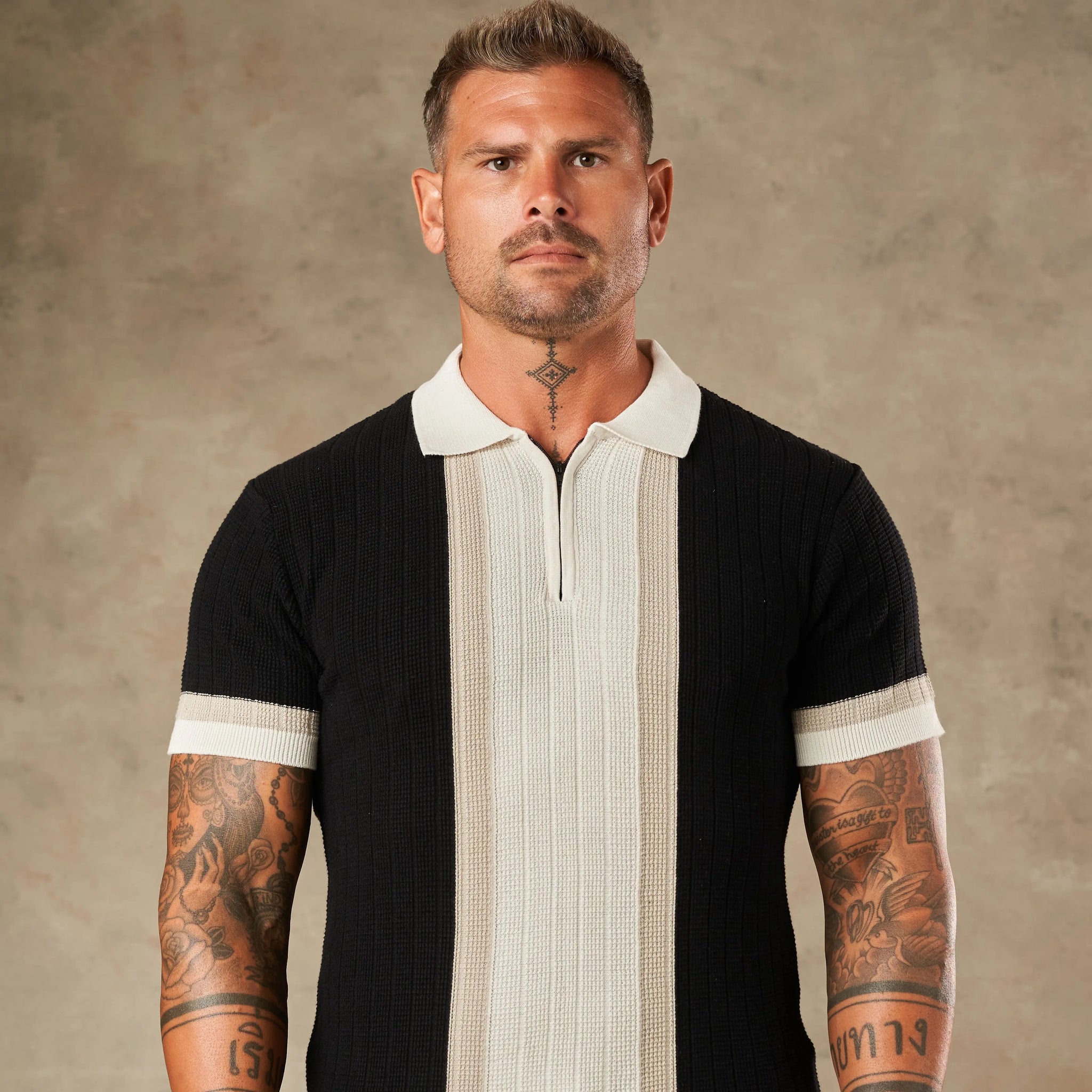 Vertical Colour Block Zipper Polo
