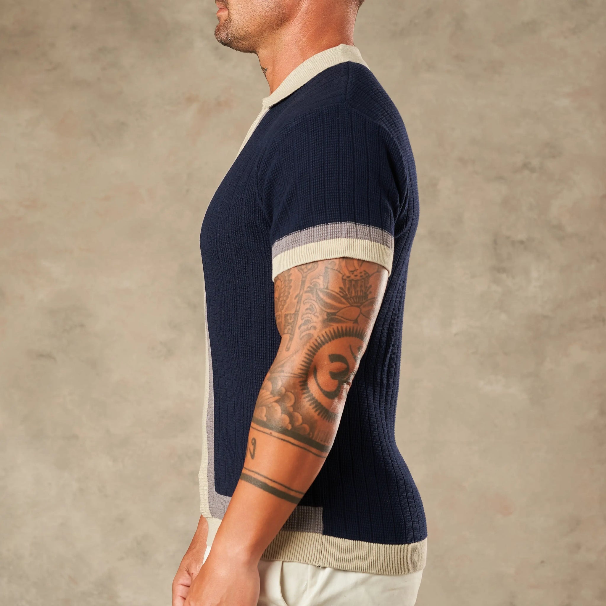 Cut to sit sharp at the shoulder and easy through the body, this piece keeps structure without feeling rigid in warm-weather movement.